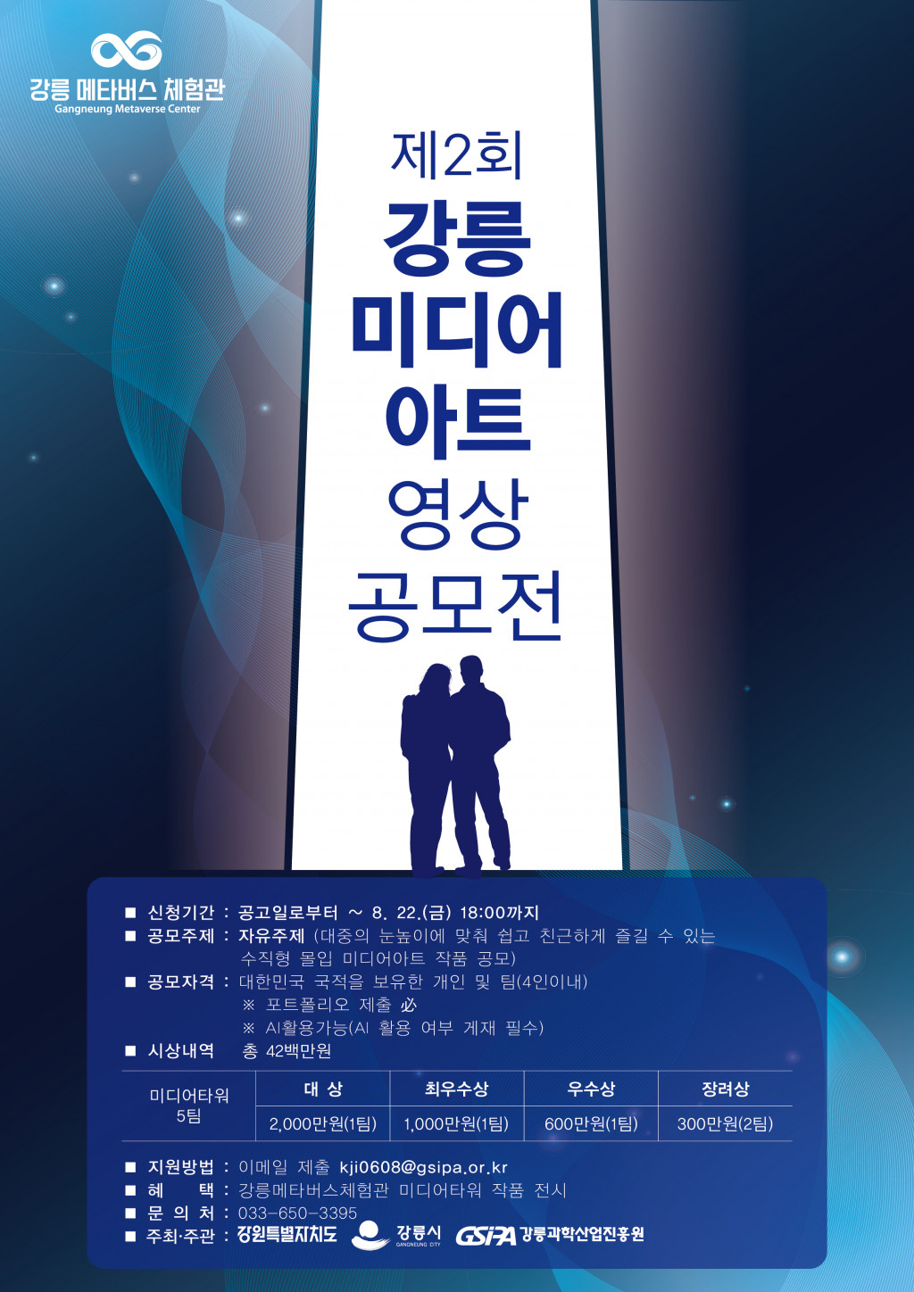 을 담아낼 작품들을 기다리고 있습니다. 시민들에게 감동과 시각적 즐거움을 줄 수 있도록 「제2회 강릉 미디어아트 영상 공모전」에 많은 관심과 참여 바랍니다.